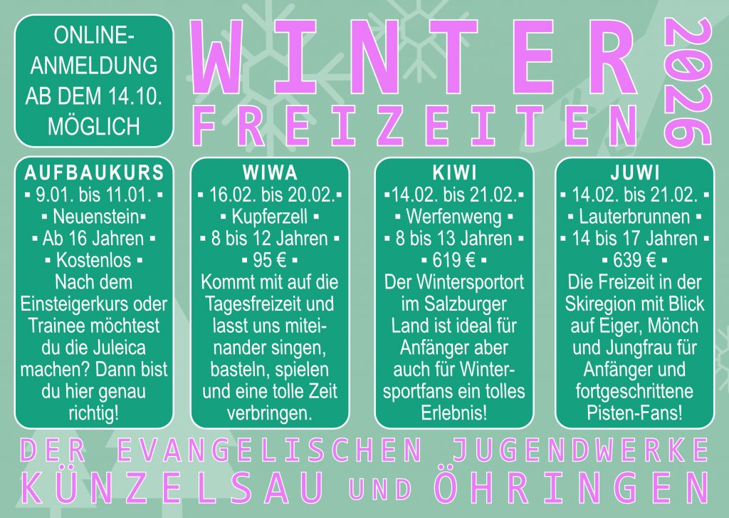 Die Evangelischen Jugendwerke Bezirk Öhringen und Bezirk Künzelsau bieten zusammen Sommer- und Winterfreizeiten an.