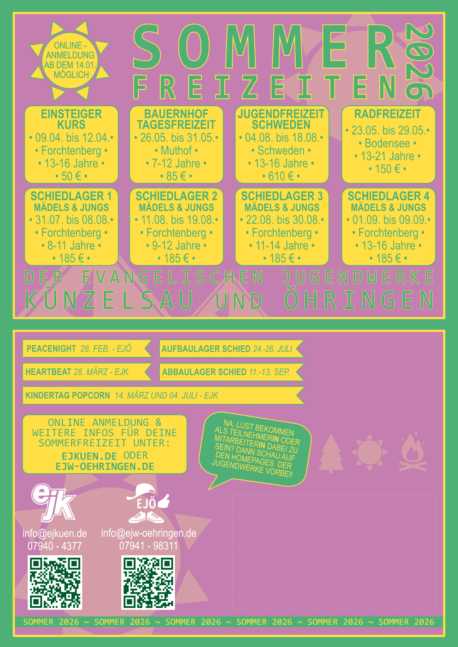 Für die Sommerfreizeiten kann man sich ab 14.Januar 2026 um 8 Uhr anmelden.