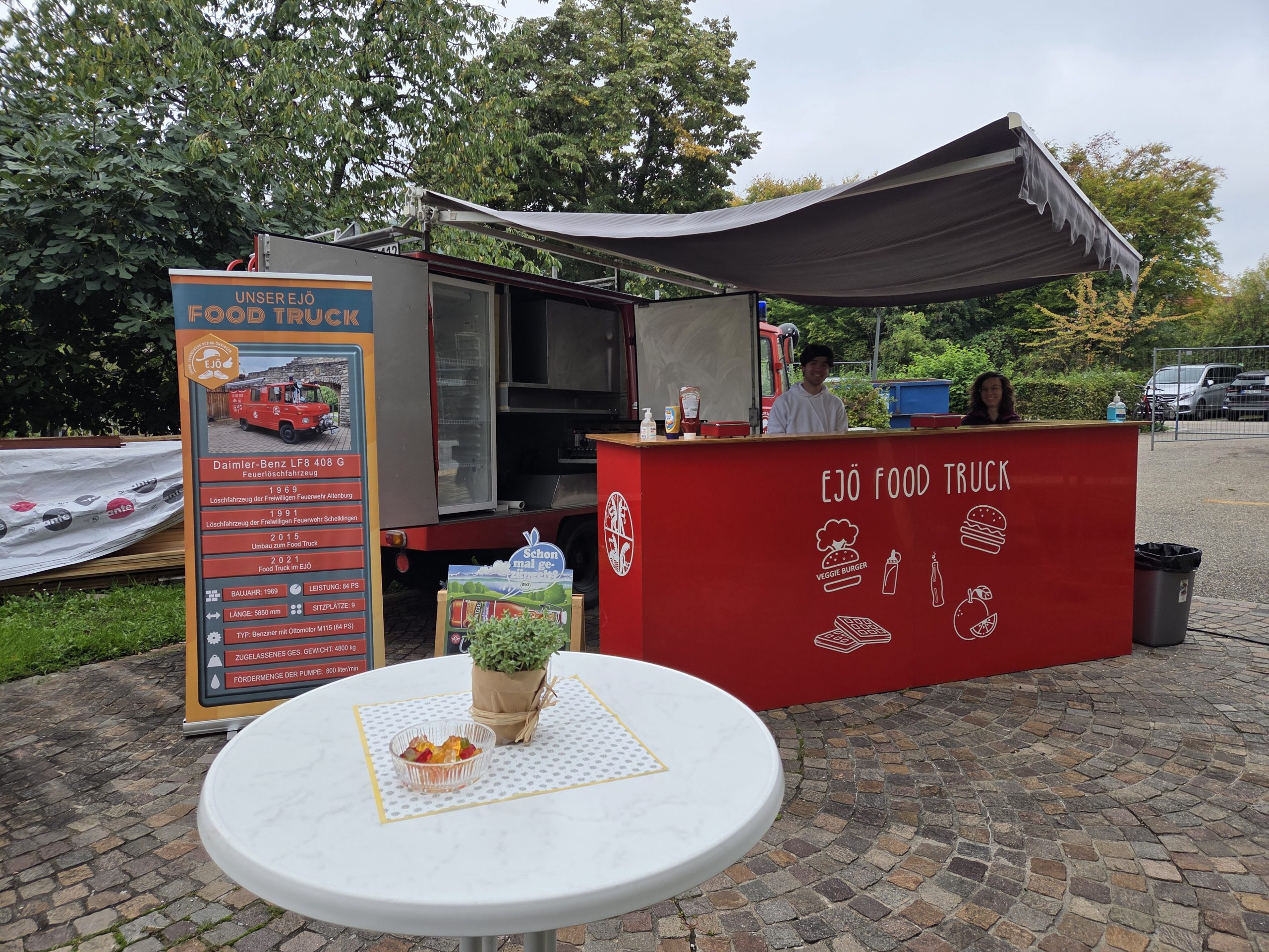 Der Erlös der Aktion ist für das Evang. Jugendwerk bestimmt. Unser Jugendwerk hat zur niederschwelligen Kontaktarbeit mit Jugendlichen und jungen Erwachsenen ein antikes Feuerwehrauto gekauft, welches zum Foodtruck umgebaut wurde.